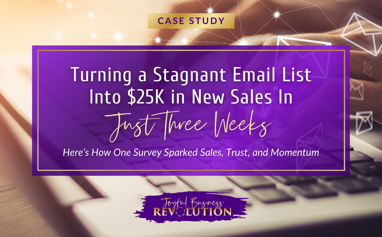 In just a few weeks, we turned things around with one simple yet strategic move: sending a carefully designed survey to her email list. The result? $25,000 in new sales—closed in just three weeks.